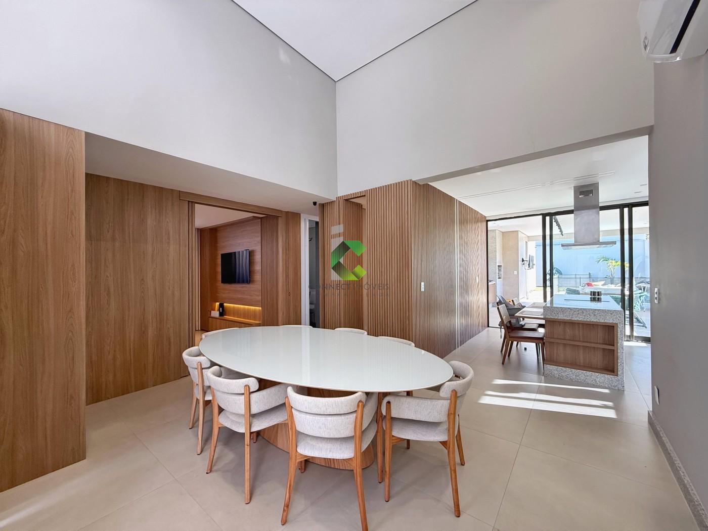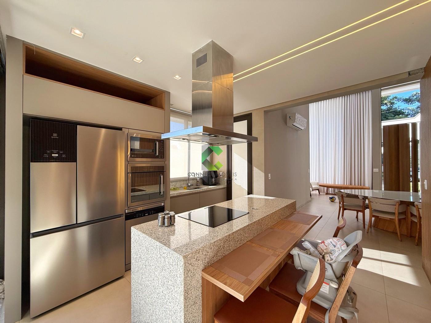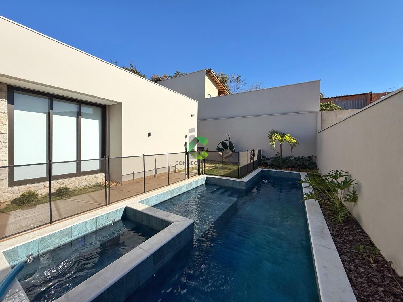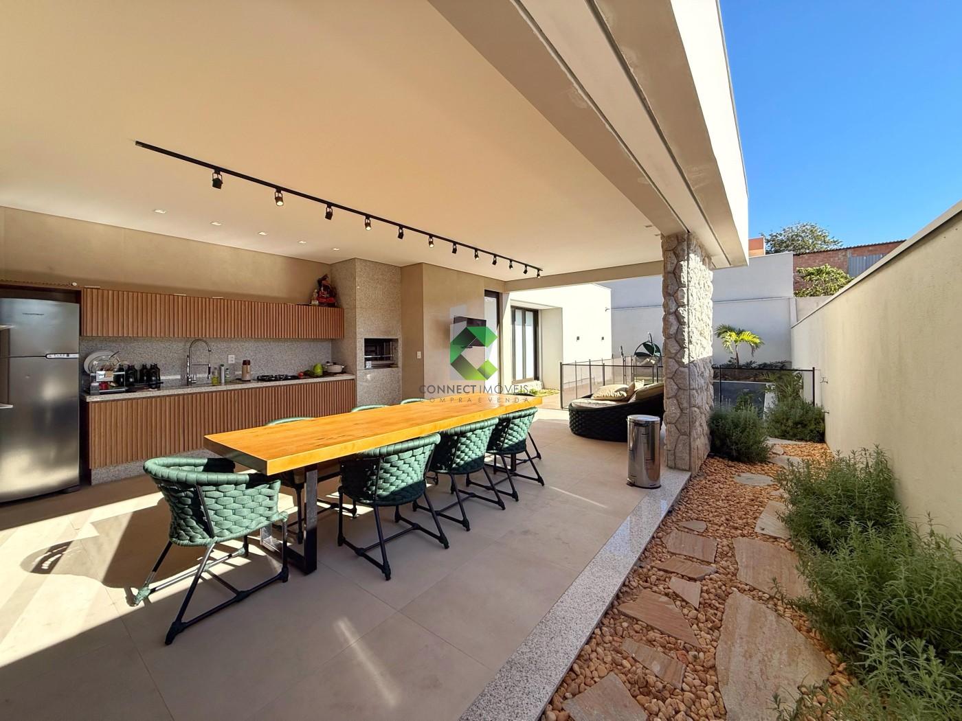 DO IMÓVEL: Casa LINEAR de ALTO PADRÃO com acabamento moderno e projeto assinado pela FORMATO ARQUITETURA. Um visual moderno com fachada imponente e detalhes em PEDRA MOLEDO, piso da garagem em GRANITO ANDORINHA e PORCELANATOS. A porta em ACM de 4,5 metros de altura se destaca e cria uma harmonia perfeita com o detalhe em vidro que garante a elegância e iluminação do ambiente. A casa se destaca pelos ambientes integrados e a riqueza de detalhes em marcenaria. A sala com pé direito duplo oferece muito conforto, o HOME CINE já está te esperando para assistir aquele filme ou serie preferida. Nesse ambiente você conta com um lavabo finamente decorado. A cozinha conta com uma ilha, torre quente, e é ricamente planejada, você também conta com uma despensa para melhor organização. Área de serviço separada e coberta, também com muitos armários e banheiro na área gourmet. A cozinha além de perfeita se integra com a área gourmet onde você consegue receber os seus convidados confortavelmente. Piscina aquecida com spa, controle de temperatura e iluminação emLED, muita área verde compõe o ambiente de maneira muito agradável. A casa conta com um escritório, banheiro social e 3 quartos amplos sendo a suíte com closet, conta também com4 vagas de garagem, sendo duas cobertas e sistema CFTV já instalado. Conta ainda com 14 placas solares já instaldas com pré-disposição para mais 6.