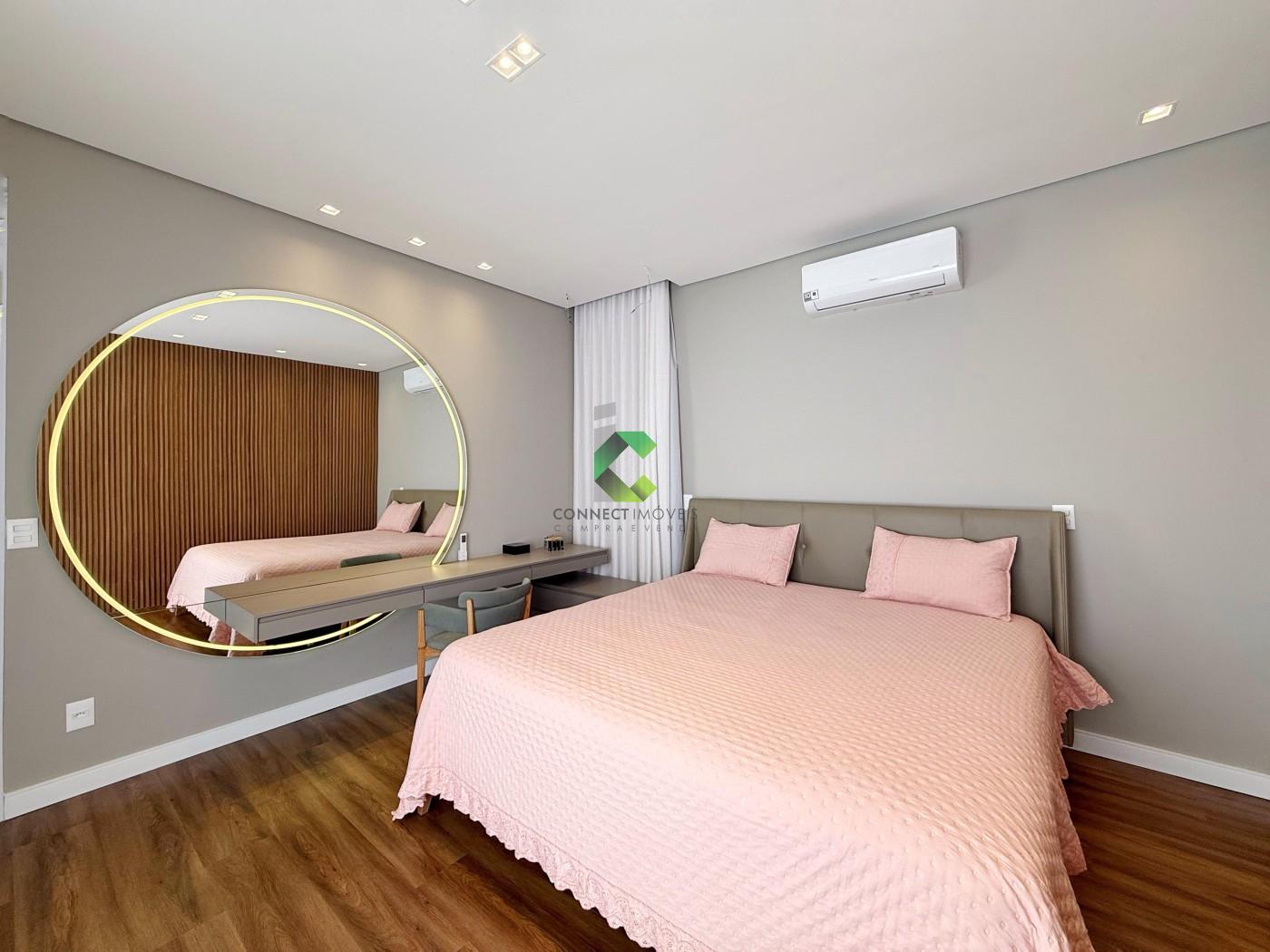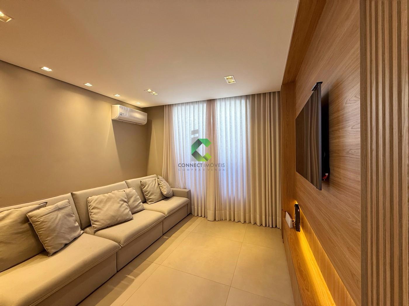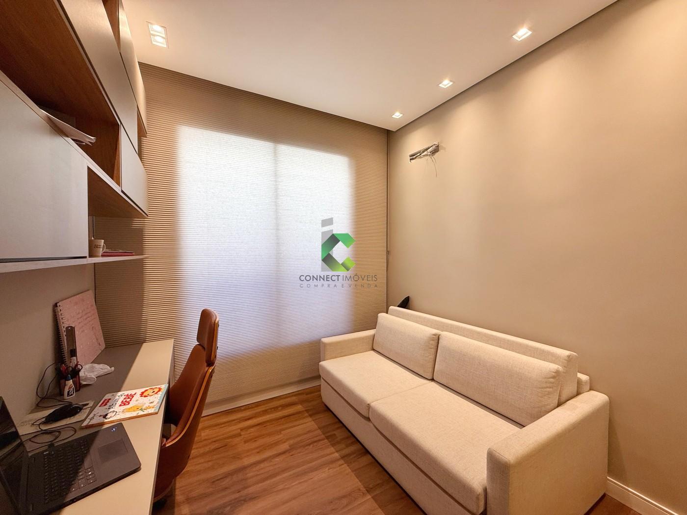 ACABAMENTO: Pisos em granito, porcelanato e vinílico nos quartos. Granito andorinha na garagem, granito branco Ceará, porcelanato bege Bahia, portas em ACM, pré-disposição para ar condicionado, energia solar e fotovoltaica, cortinas automatizadas, Armários planejados nos quartos, escritório, cozinha e área gourmet. As gavetas possuem trilho embutido e sistema ante impacto.