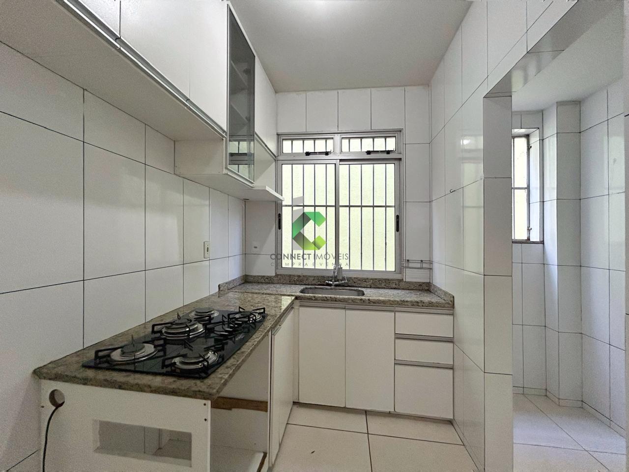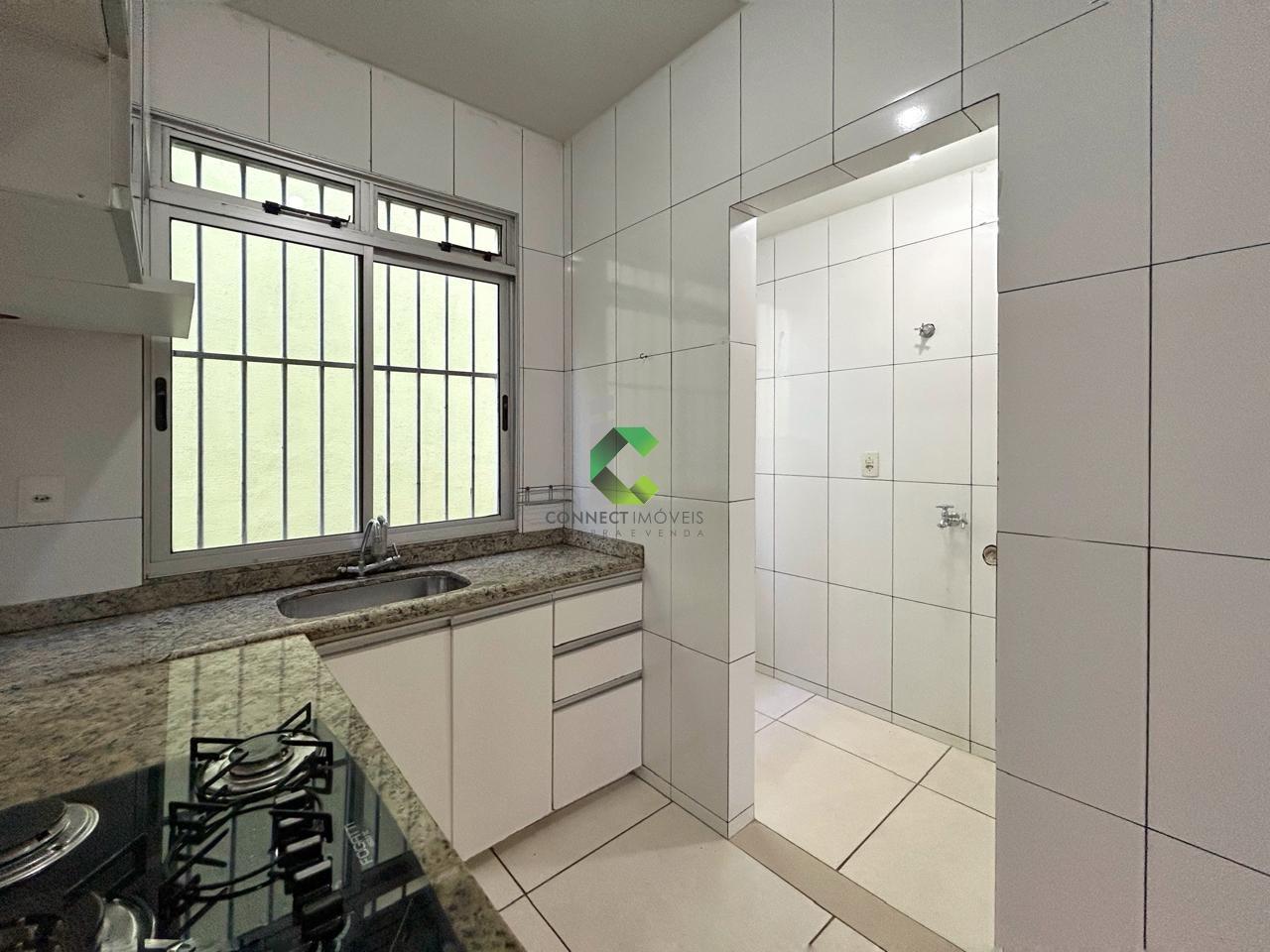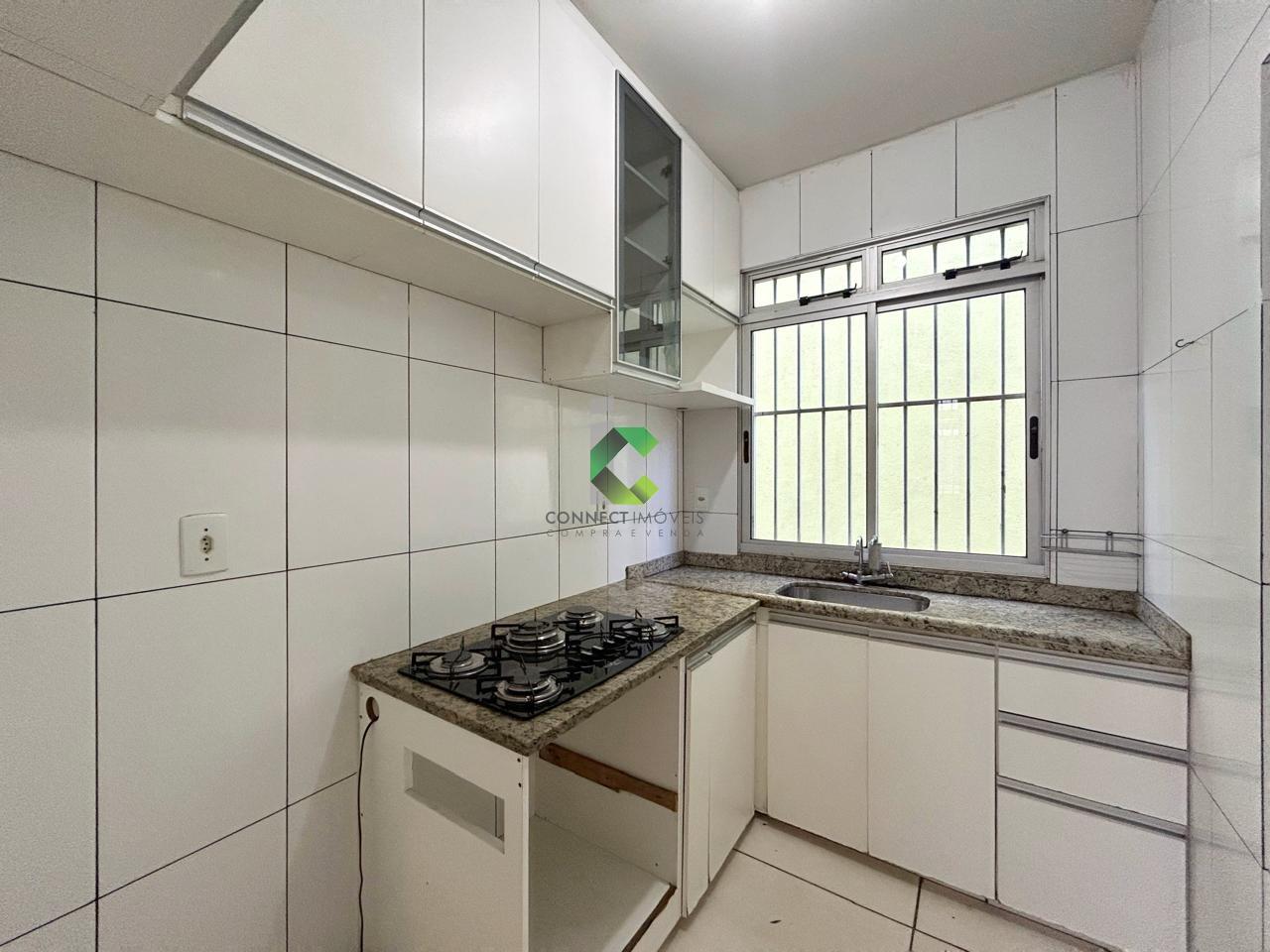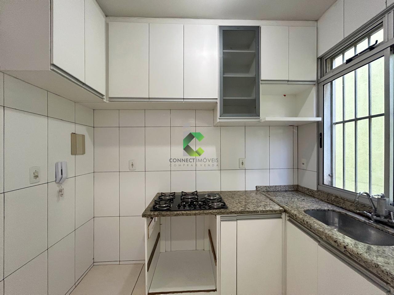 Bancadas em granito na cozinha e box em blindex no banheiro elevam o padrão do imóvel, completado ainda por armário planejado na cozinha, perfeito para armazenar utensílios com organização e estilo.