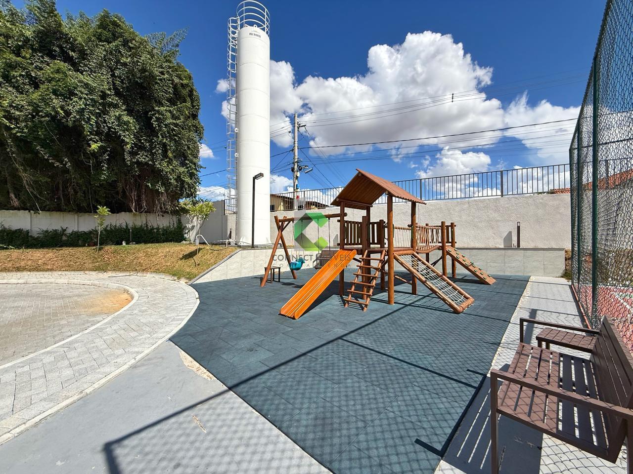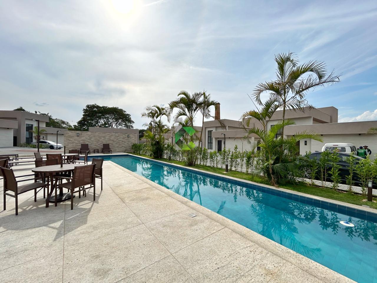 O condomínio conta com portaria 24h, salão de festas, quadra poliesportiva, academia, pista de caminhada e piscina.