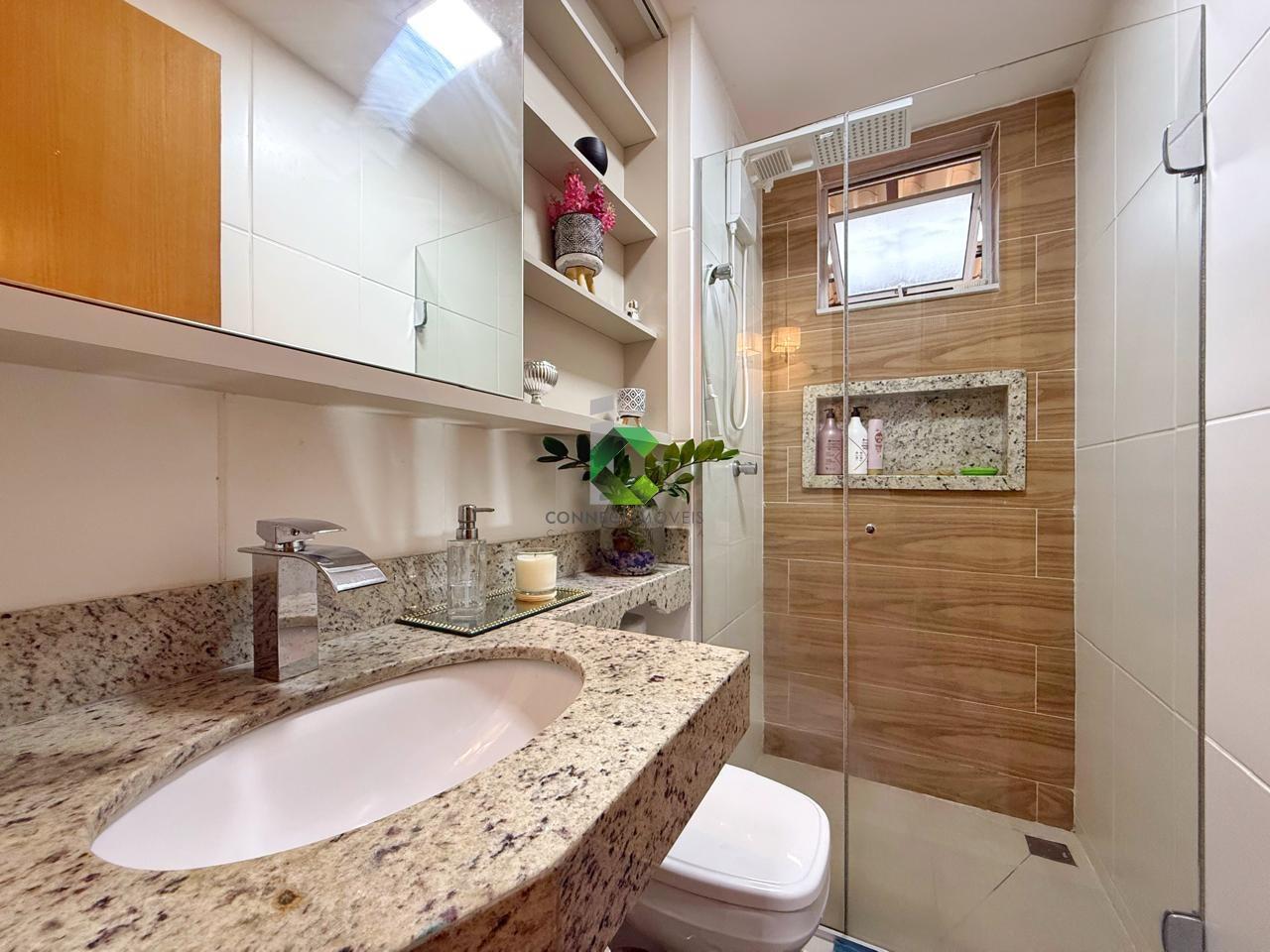 Com dois amplos dormitórios, todos equipados com armários embutidos, o apartamento proporciona praticidade e organização para o seu dia a dia. A sala, espaçosa e acolhedora, é perfeita para momentos de convivência com amigos e familiares. O piso em porcelanato e as bancadas em granito na cozinha agregam elegância e facilitam a manutenção do espaço.
