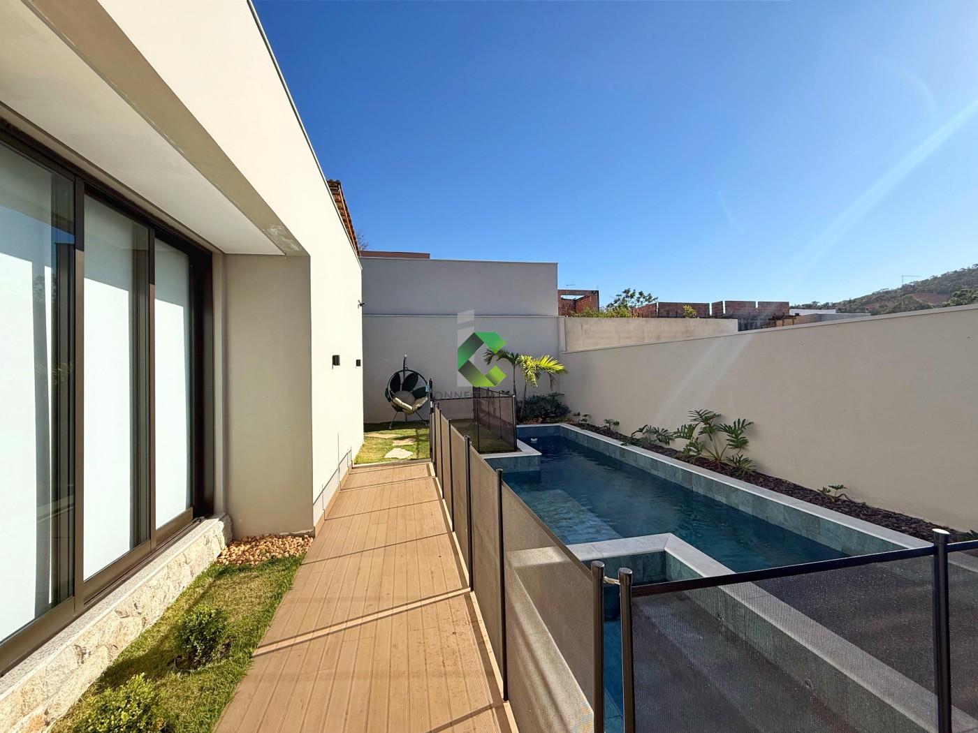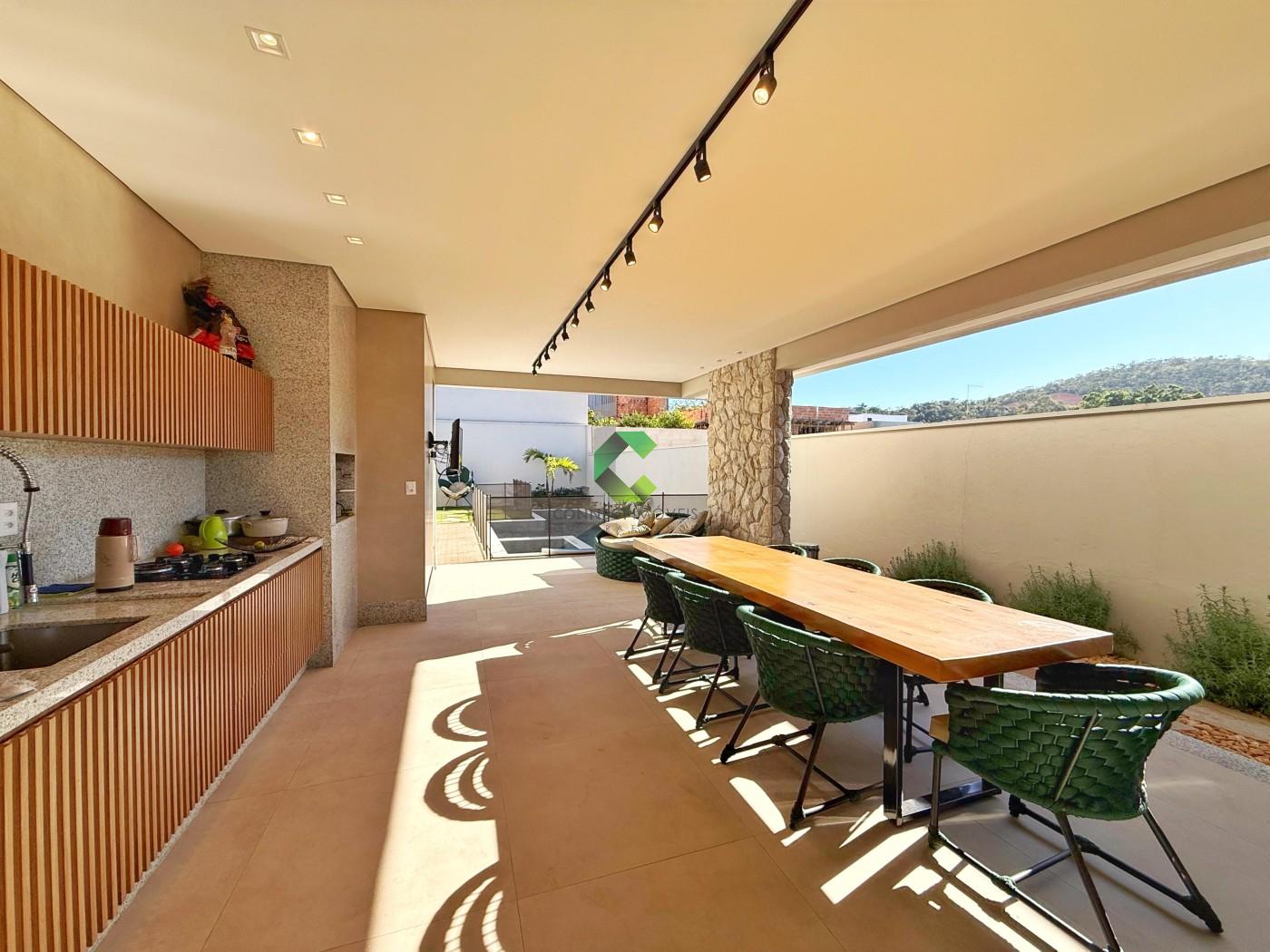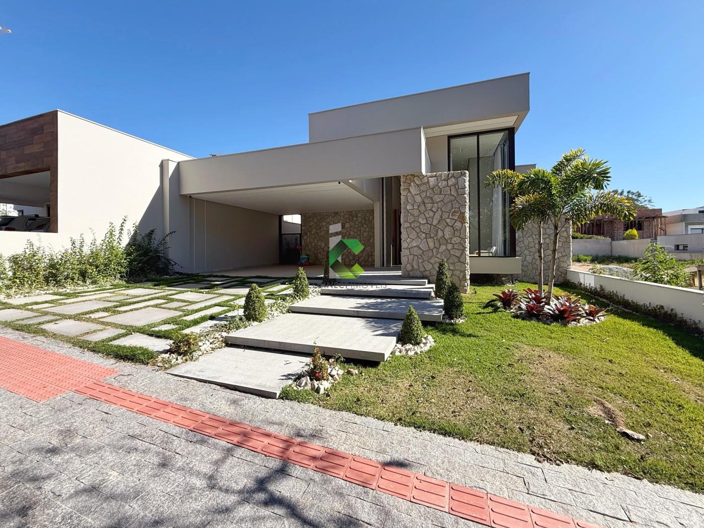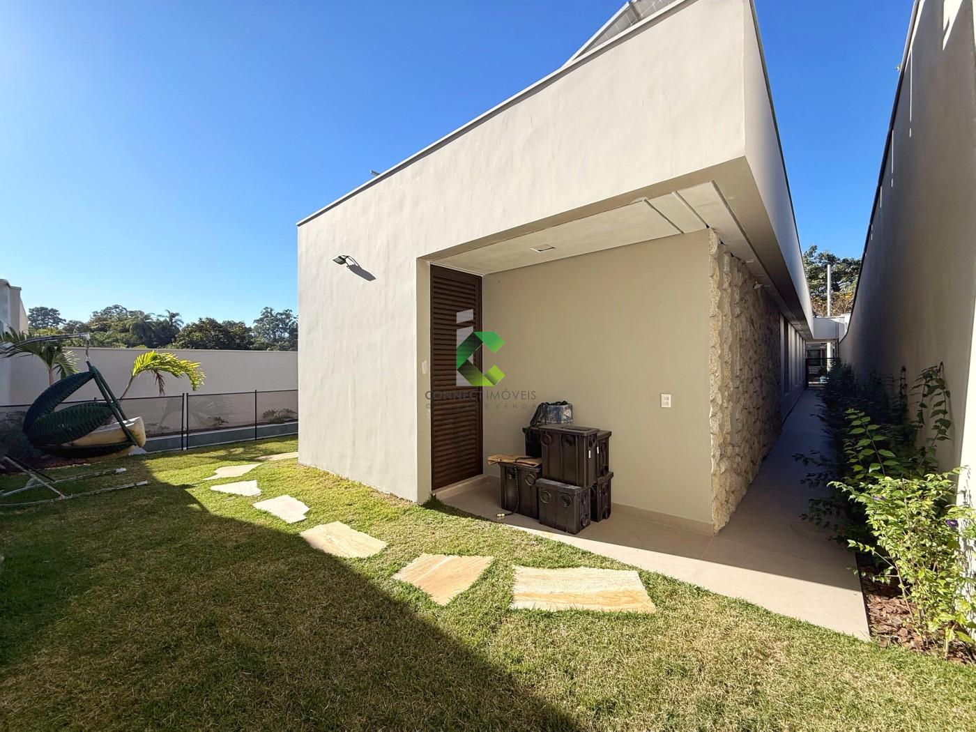 DO IMÓVEL: Casa LINEAR de ALTO PADRÃO com acabamento moderno e projeto assinado pela FORMATO ARQUITETURA. Um visual moderno com fachada imponente e detalhes em PEDRA MOLEDO, piso da garagem em GRANITO ANDORINHA e PORCELANATOS. A porta em ACM de 4,5 metros de altura se destaca e cria uma harmonia perfeita com o detalhe em vidro que garante a elegância e iluminação do ambiente. A casa se destaca pelos ambientes integrados e a riqueza de detalhes em marcenaria. A sala com pé direito duplo oferece muito conforto, o HOME CINE já está te esperando para assistir aquele filme ou serie preferida. Nesse ambiente você conta com um lavabo finamente decorado. A cozinha conta com uma ilha, torre quente, e é ricamente planejada, você também conta com uma despensa para melhor organização. Área de serviço separada e coberta, também com muitos armários e banheiro na área gourmet. A cozinha além de perfeita se integra com a área gourmet onde você consegue receber os seus convidados confortavelmente. Piscina aquecida com spa, controle de temperatura e iluminação emLED, muita área verde compõe o ambiente de maneira muito agradável. A casa conta com um escritório, banheiro social e 3 quartos amplos sendo a suíte com closet, conta também com4 vagas de garagem, sendo duas cobertas e sistema CFTV já instalado. Conta ainda com 14 placas solares já instaldas com pré-disposição para mais 6.
