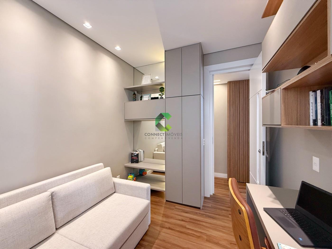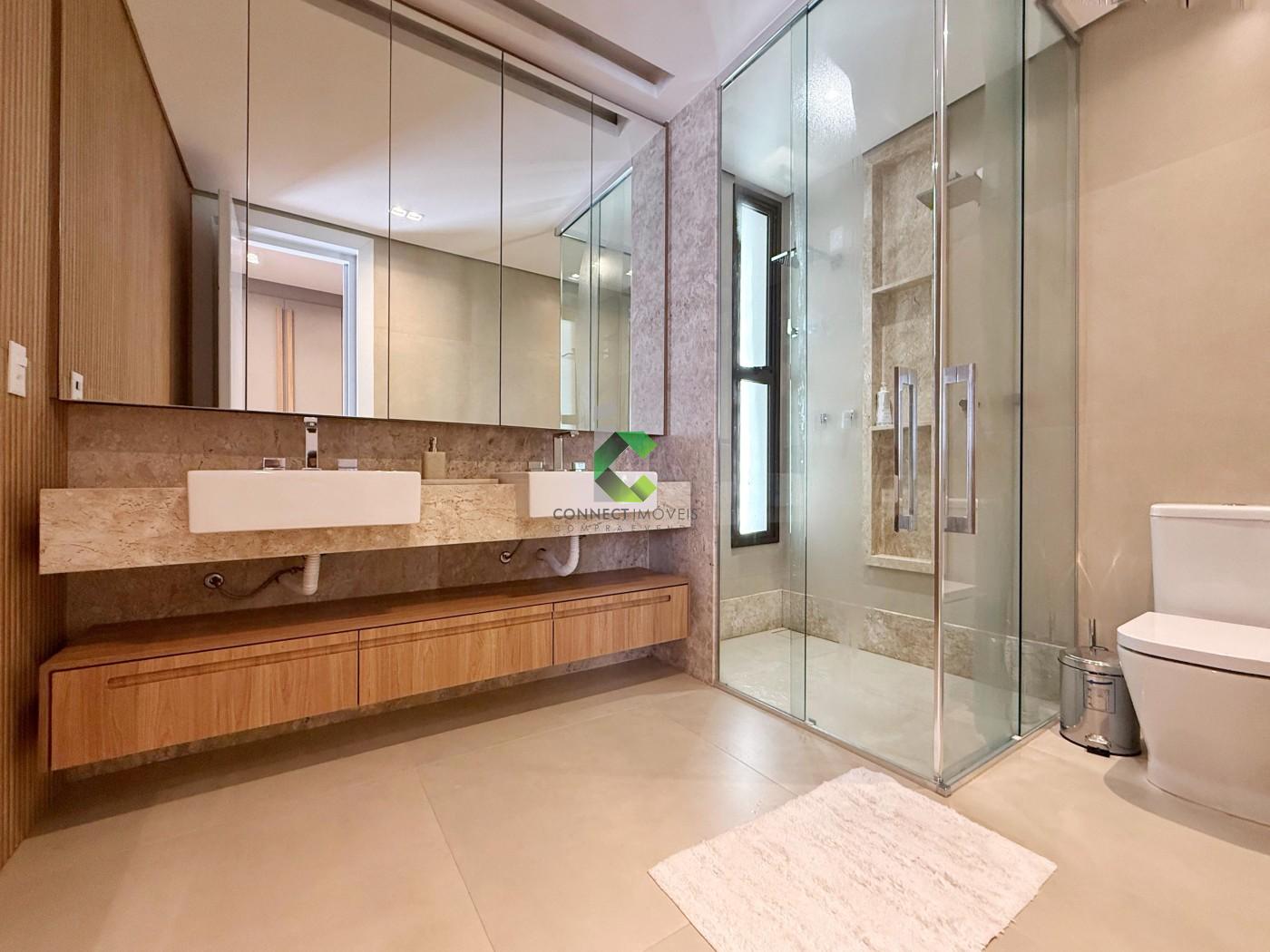 ACABAMENTO: Pisos em granito, porcelanato e vinílico nos quartos. Granito andorinha na garagem, granito branco Ceará, porcelanato bege Bahia, portas em ACM, pré-disposição para ar condicionado, energia solar e fotovoltaica, cortinas automatizadas, Armários planejados nos quartos, escritório, cozinha e área gourmet. As gavetas possuem trilho embutido e sistema ante impacto.