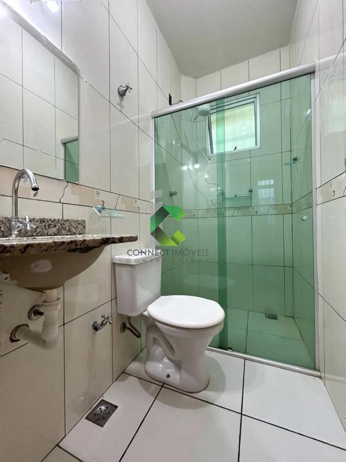 Bancadas em granito na cozinha e box em blindex no banheiro elevam o padrão do imóvel, completado ainda por armário planejado na cozinha, perfeito para armazenar utensílios com organização e estilo.