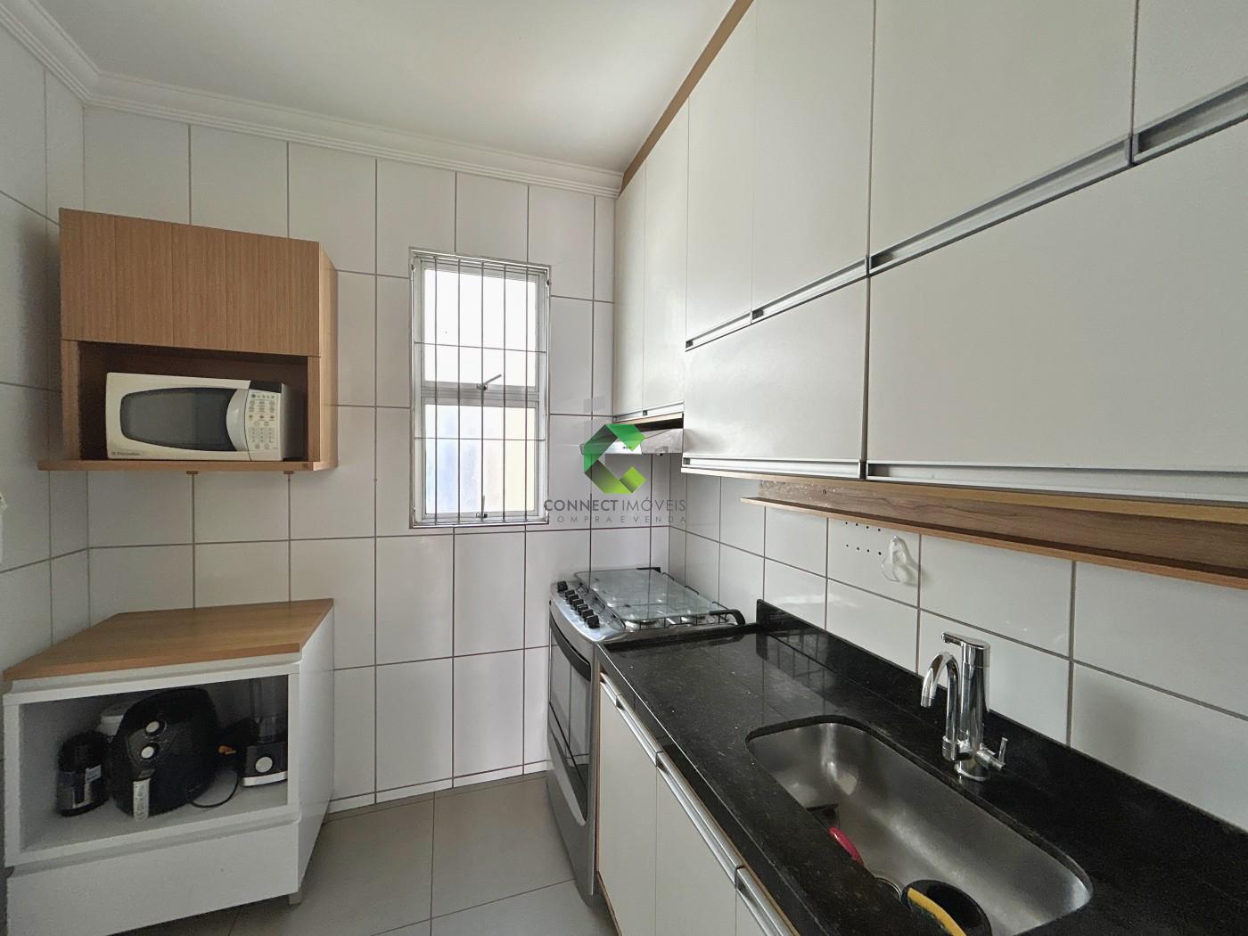 A cozinha é planejada, com piso em porcelanato, bancada em granito e armários de excelente padrão. O banho social segue o mesmo estilo, com bancada em granito, armário planejado e box em vidro temperado.