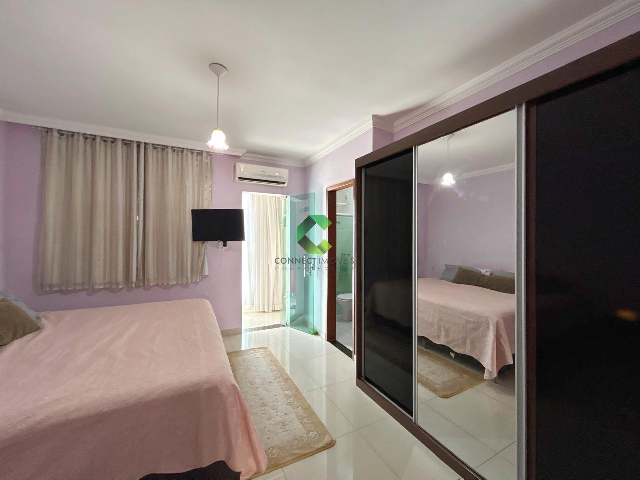 A sala recebe rebaixamento em gesso e piso em porcelanato, enquanto a cozinha espaçosa revela bancadas em granito e armário planejado. Box em blindex, armário no banheiro, ar-condicionado na suíte e pintura texturizada elevam seu conforto, criando um ambiente perfeito para receber família e amigos.